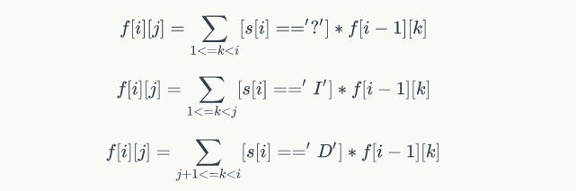 if (s[i-1]=='I') f[i][j]=sum[j-1];